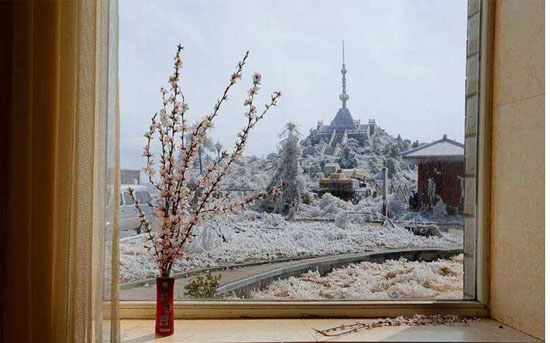 8 إبريل 2015/صحيفة الشعب اليومية أونلاين/ أدى اجتياح الجو البارد من شمال الى جنوب الصين في الاسبوع الماضي الى سقوط الثلوج في بعض المناطق مشكّلة لوحات فنية بالغة السحر والجمال بتمازج نادر بين الثلوج والزهور.