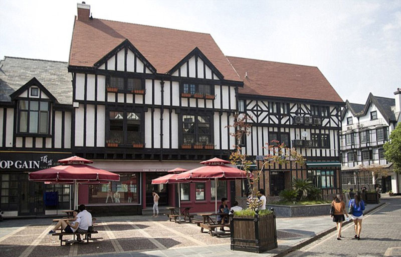 تقع "التايمز تاون" الصينية في مدينة شانغهاي، انفتحت في عام 2006، حيث توجد الحانات والمتاجر وغيرها من المباني التقليدية البريطانية لإحياء طريقة الحياة البريطانية. واستخدم المصممون النهر الاصطناعي في تقليد نهر التايمز، توجد في "التايمز تاون" أيضا تماثيل لرئيس الوزراء البريطاني السابق ونستون تشرشل و هاري بوتر إلخ.
