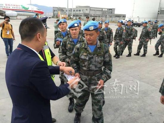 كونمينغ 19 مايو 2015/غادر فريق صيني من 85 جنديا إلى لبنان اليوم (الثلاثاء) في مهمة لحفظ السلام تستغرق ثمانية أشهر.