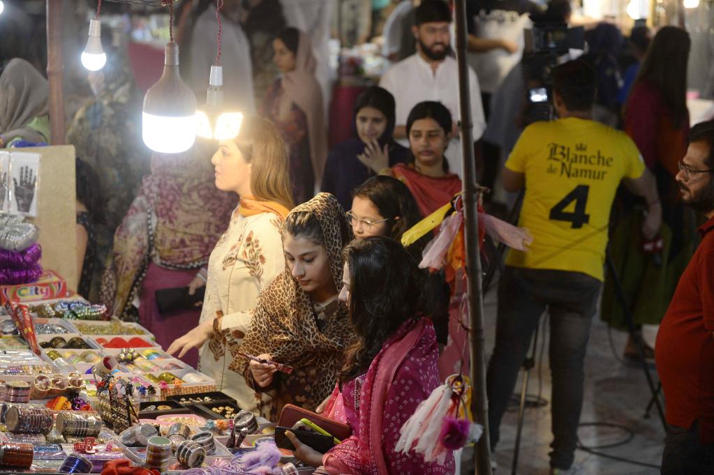 | في الصورة الملتقطة يوم 16 أبريل 2023، أشخاص يتسوقون في سوق مؤقتة أقيمت للاحتفال بعيد الفطر الإسلامي في إسلام أباد، عاصمة باكستان. مع تبقي أيام قليلة على حلول عيد الفطر الإسلامي، تعج الأسواق ومراكز التسوق الباكستانية بالمتسوقين المتحمسين، وخاصة النساء والأطفال، الذين ينفقون بإسراف وهم في مزاج احتفالي للاحتفال بالمناسبة الخاصة الوشيكة. |