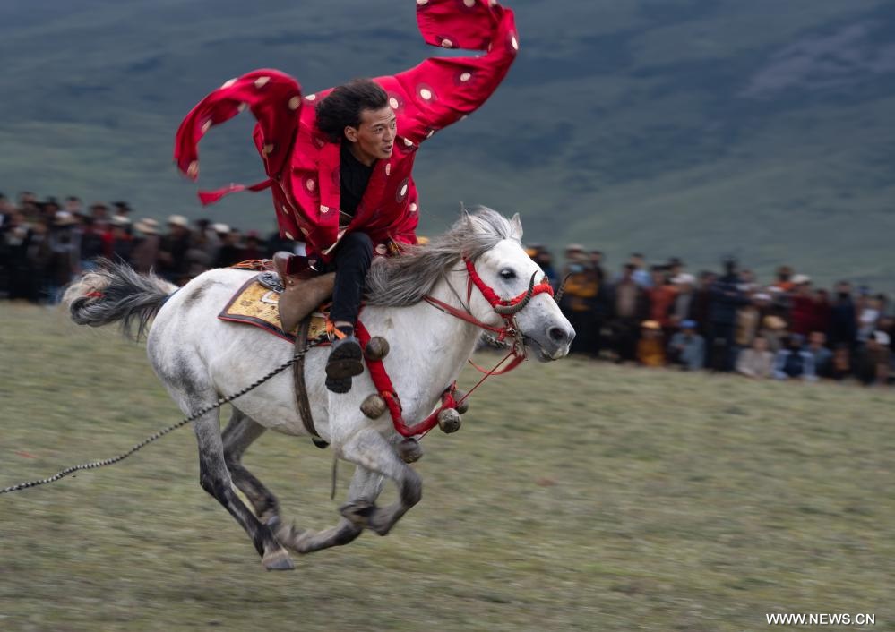 ليتانغ 31 يوليو 2024 (شينخوا) في الصورة الملتقطة يوم 30 يوليو 2024، فارس يعرض مهاراته في مضمار سباق في محافظة ليتانغ بولاية قانتسي التبتية ذاتية الحكم بمقاطعة سيتشوان بجنوب غربي الصين. وبدأت فعالية سباق الخيل في محافظة ليتانغ يوم الثلاثاء الماضي، مما جذب ما يقرب من 1000 من الرعاة من جميع أنحاء المحافظة للمشاركة في مجموعة من الأنشطة المتنوعة.
