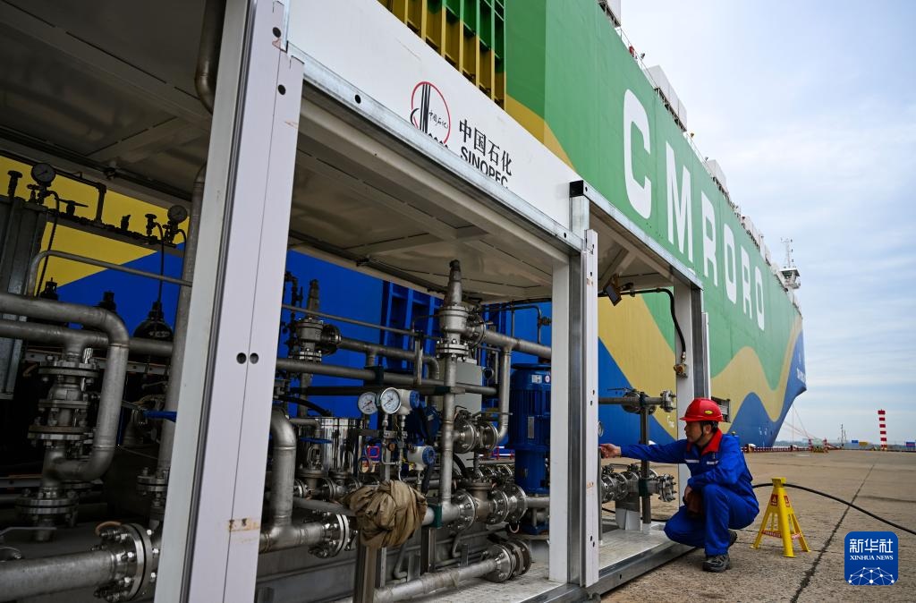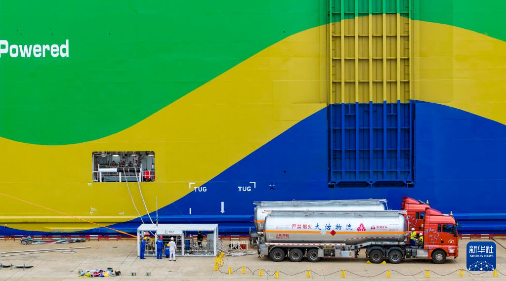 تيانجين 24 سبتمبر 2025 (شينخوا) تم تزويد سفينة لدحرجة السيارات بـ300 طن من وقود الميثانول الأخضر في ميناء تيانجين بشمالي الصين صباح يوم الثلاثاء الماضي، في عملية هي الأولى من نوعها لتزويد سفينة دحرجة بوقود الميثانول الأخضر بالبلاد.