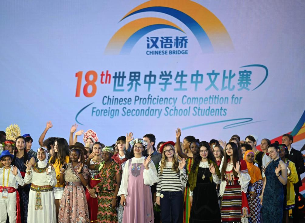 تيانجين 27 سبتمبر 2025 (شينخوا) في الصورة الملتقطة يوم 26 سبتمبر 2025، جانب من نهائيات الدورة الـ18 لمسابقة "الجسر الصيني" للكفاءات الصينية لطلاب المدارس الثانوية الأجانب في تيانجين بشمالي الصين.