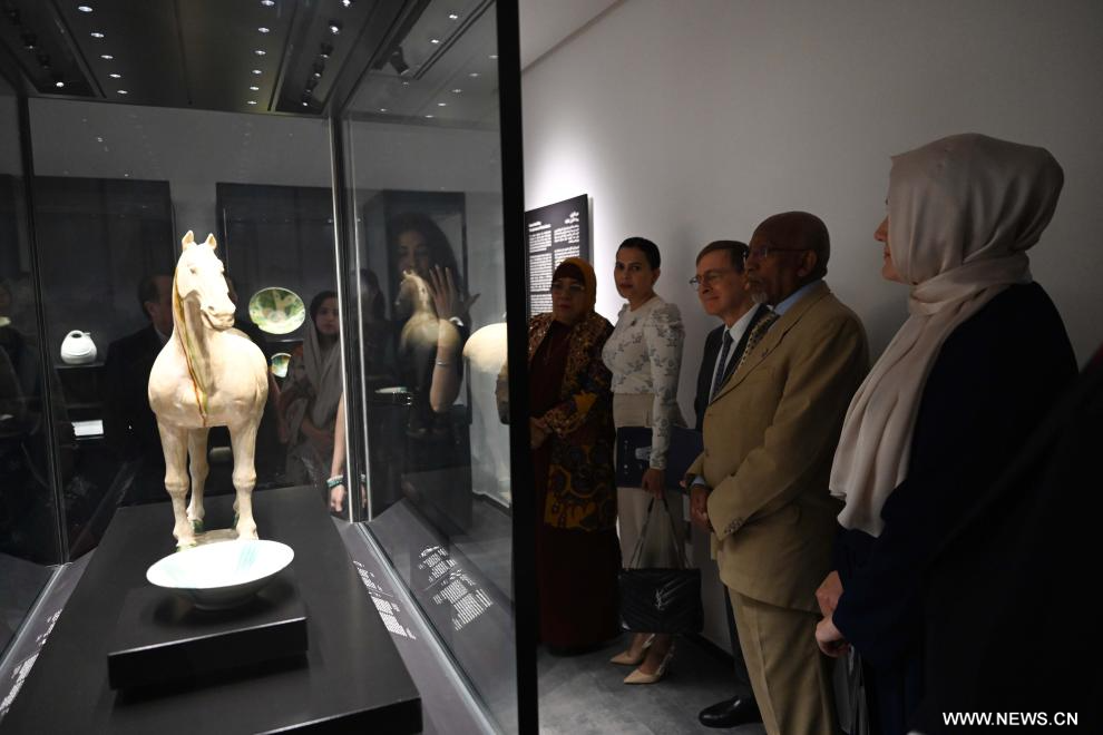 ويضم المعرض 128 قطعة أثرية متنوعة من مجموعة الصباح الأثرية توثق رحلة التبادل الفني والثقافي بين الحضارتين الصينية والإسلامية عبر آلاف السنين.