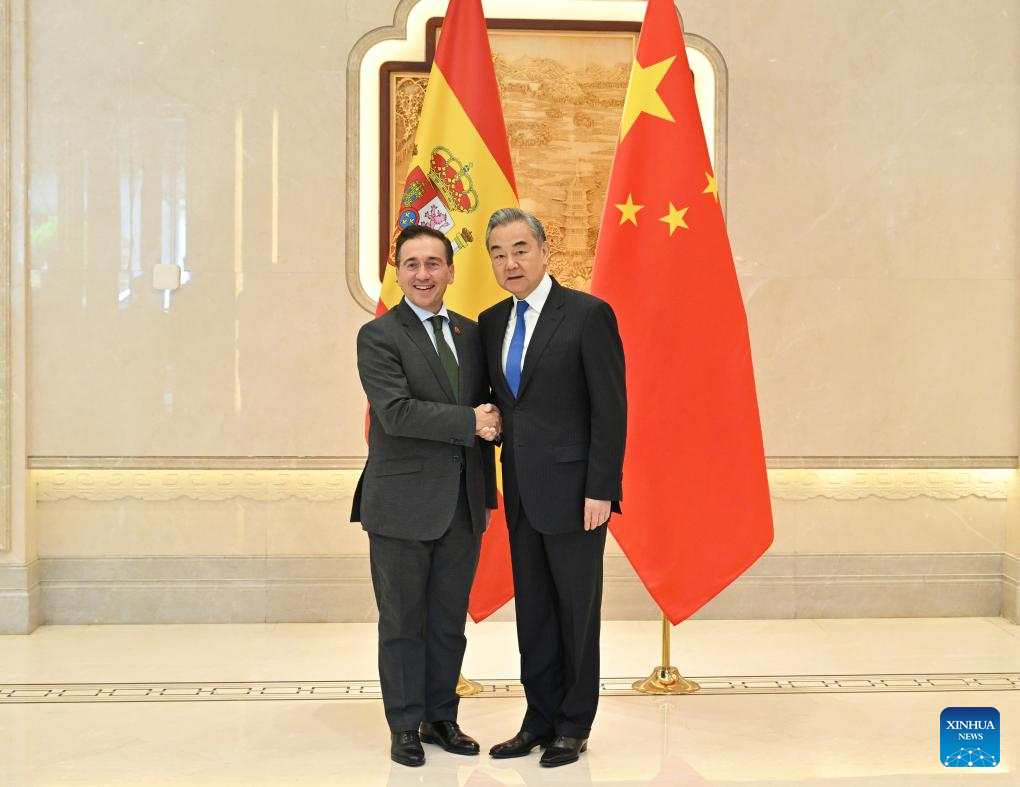 وقال وانغ إنه يتعين على الصين وإسبانيا النظر إلى العلاقات الثنائية من منظور استراتيجي طويل الأجل، وتطوير شراكة استراتيجية شاملة أكثر مرونة وحيوية.