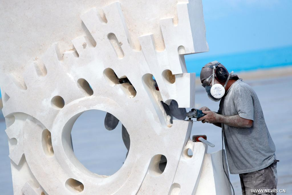 وفي اليوم السابق لاختتام الفعالية، كانت النحاتة التركية سونغول تيليك لا تزال تضع اللمسات الأخيرة على عملها تحت شمس الظهيرة.