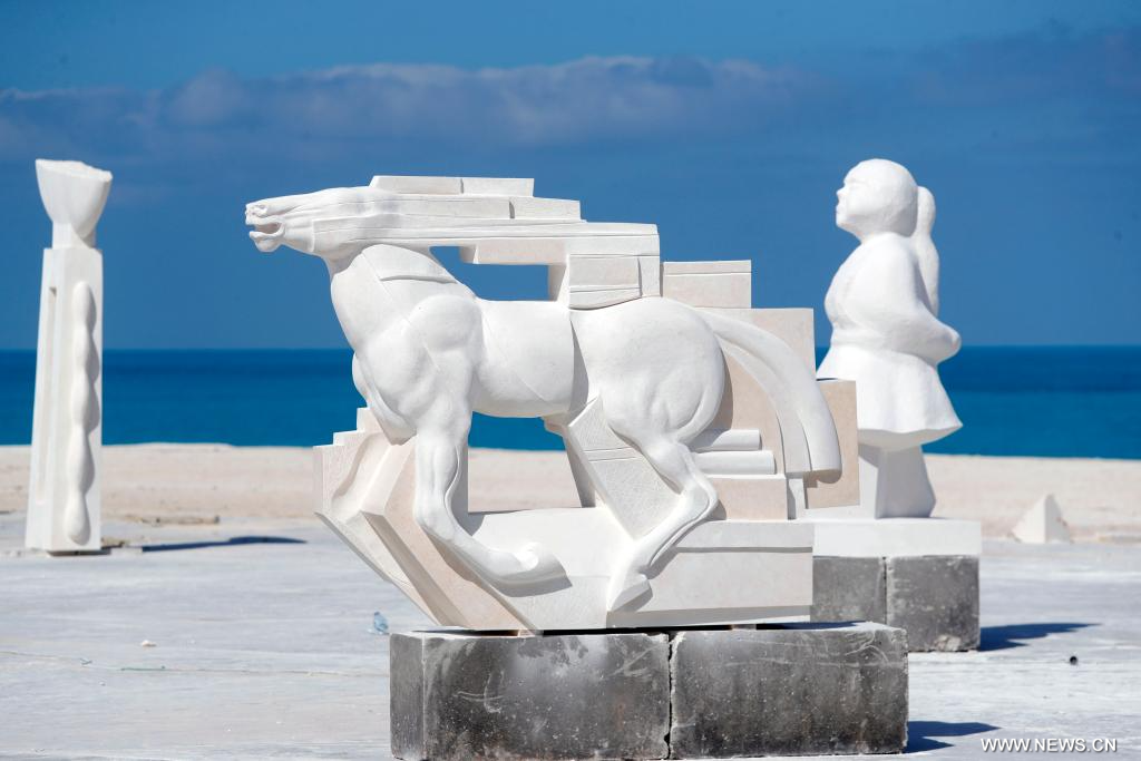 العلمين الجديدة، مصر 28 أكتوبر 2025 (شينخوا) تحت سماء البحر المتوسط الزرقاء، ترتفع صفوف من المنحوتات البيضاء بالقرب من ساحل مدينة العلمين الجديدة شمالي مصر، حيث تقف مجسمات تجريدية وهندسية وتماثيل بشرية في حوار صامت مع نسيم البحر، لتحول الواجهة البحرية إلى معرض فني مفتوح يعكس هوية المدينة الحديثة.