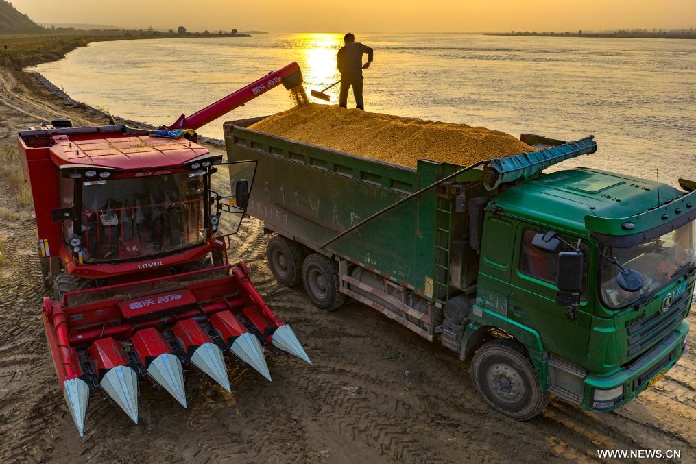 | في الصورة الملتقطة يوم 2 نوفمبر 2025، جانب من أعمال حصاد الذرة في مدينة سانمنشيا بمقاطعة خنان في وسط الصين. وحتى يوم 30 أكتوبر الماضي، تم حصاد أكثر من 90 بالمائة من الحبوب الخريفية وزراعة أكثر من 25 بالمائة من القمح الشتوي في أنحاء البلاد. |