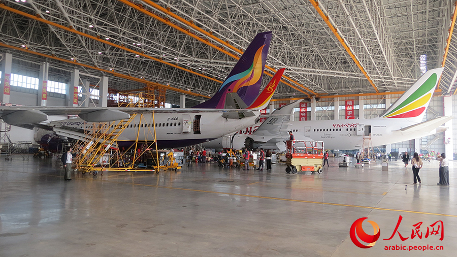 طائرة أجنبية بصدد الحصول على صيانة في قاعدة الصيانة الشاملة للطائرات بهايكو