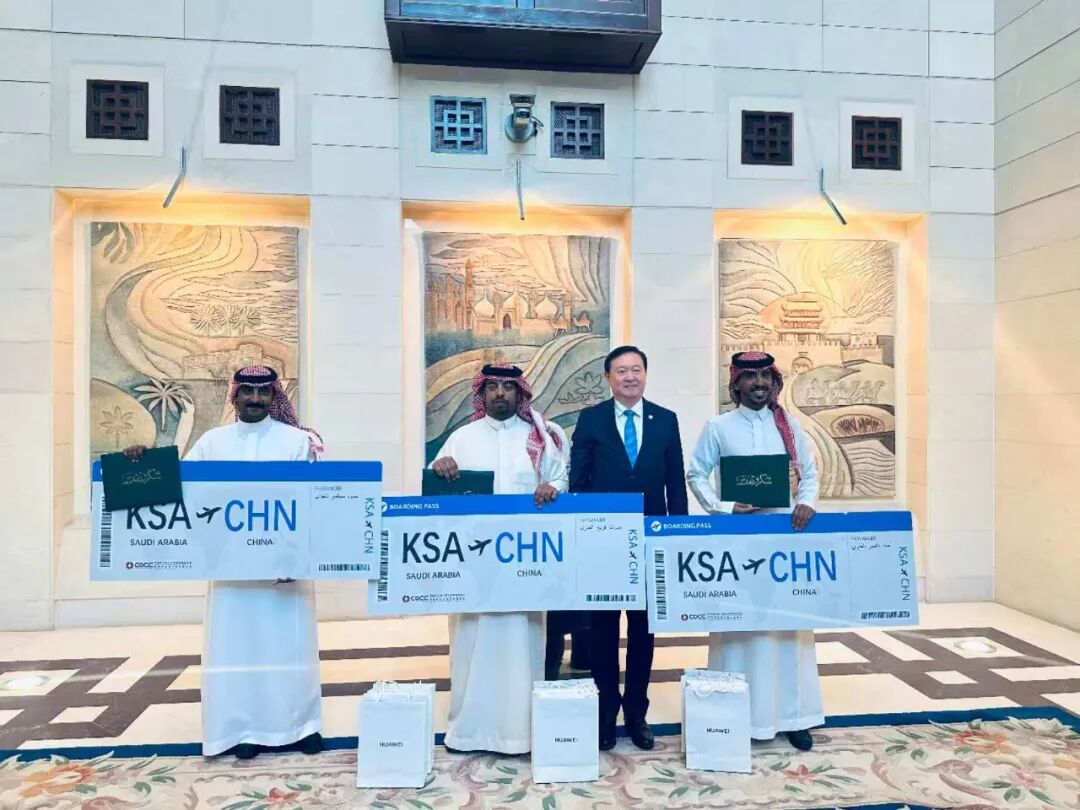 19 نوفمبر 2025/صحيفة الشعب اليومية أونلاين/ استقبل السفير الصيني لدى المملكة العربية السعودية، تشانغ هوا، وأعضاء السفارة في مقر السفارة بالرياض، يوم 18 نوفمبر الجاري ثلاثة أصدقاء سعوديين مميزين من محافظة الشملي بمنطقة حائل، أحمد ناصر العنزي، وحمود مسامح العنزي، ومبارك فريح العنزي، تقديرًا لجهودهم البطولية في إنقاذ وافدين صينيين إثر انقلاب مركبتهم التي جرفتها السيول الناتجة عن الأمطار التي شهدتها المحافظة مؤخرًا.