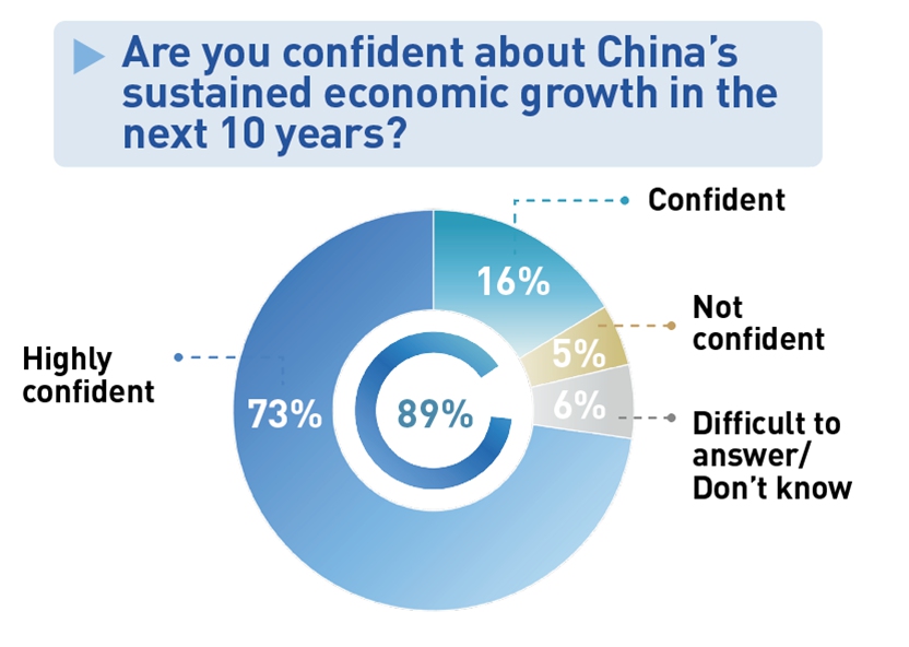 وأوضحت بيانات الاستطلاع أن أكثر من 80 % من المشاركين الأجانب قدّموا تقييما إيجابيا لأداء الاقتصاد الصيني في عام 2025، فيما أعرب ما يقرب من 90 % عن ثقتهم في استمرار نموه خلال العقد المقبل.