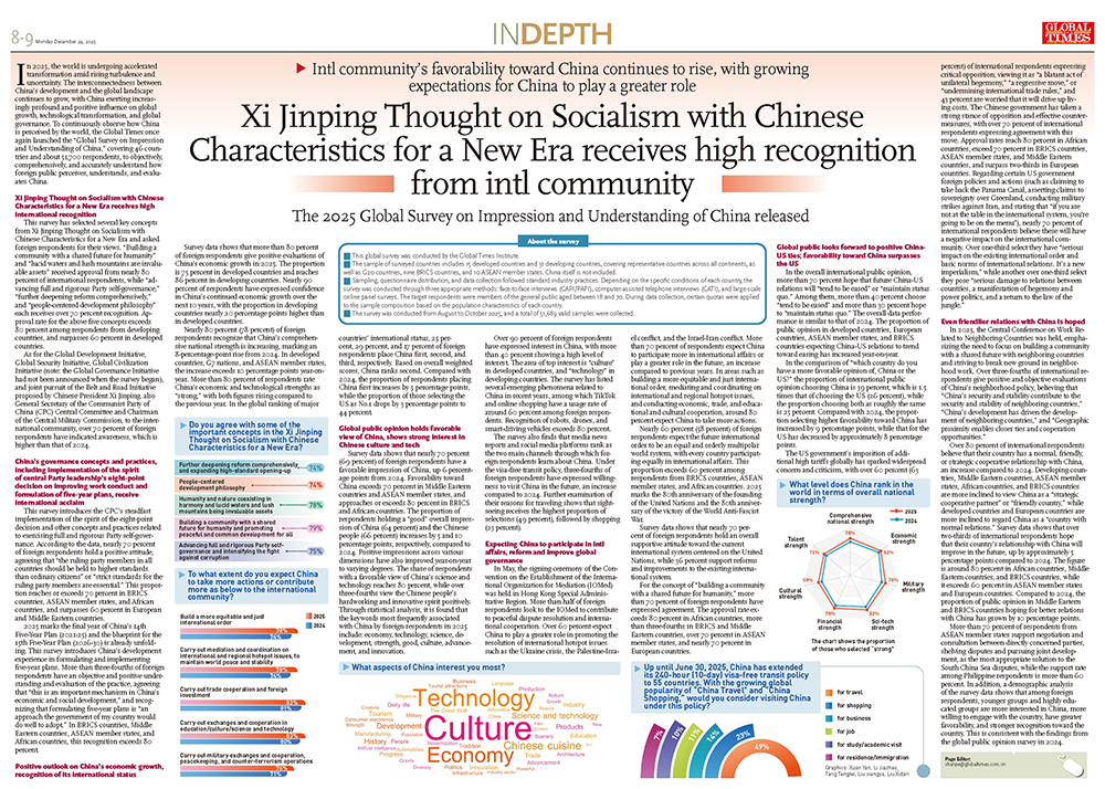 وقد نُشرت نتائج الاستطلاع العالمي لعام 2025 حول فهم الصين، الذي أطلقته صحيفة غلوبال تايمز ونفّذه معهد غلوبال تايمز، يوم الاثنين 29 ديسمبر الجاري.