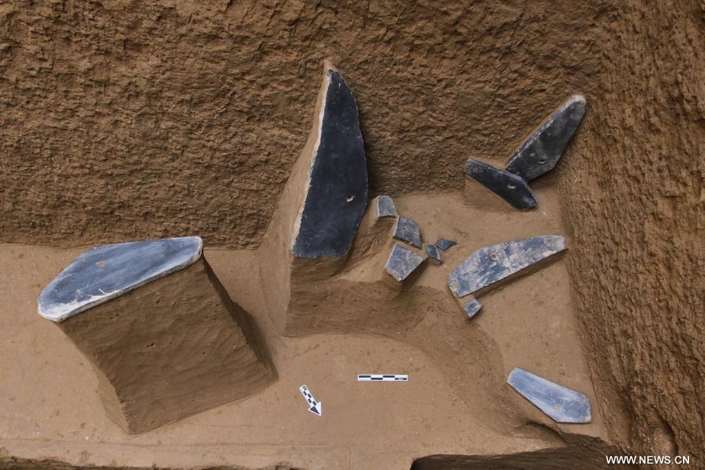 وأشار لي يان فنغ الباحث المساعد من معهد مقاطعة شنشي لعلم الآثار، إلى أنه يمكن تصنيف المقابر إلى أربع فئات بناء على خصائصها المورفولوجية وفروقاتها التدرجية. ومن بينها، تعد المقبرتان المرمزتان بـ"M1" و"M2" من الدرجة العليا نسبيا، حيث تحتوي كل منهما على ثلاث طبقات من التوابيت. وتم العثور على أكثر من 300 قطعة أثرية مصنوعة من النحاس واليشم والحجر واللك والأصداف. ومن بين أبرز القطع الأثرية المكتشفة قلائد يشمية مزخرفة بنقوش للبشر والتنانين وحراب يشمية وأجراس حجرية.
