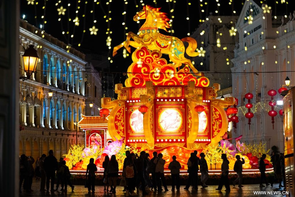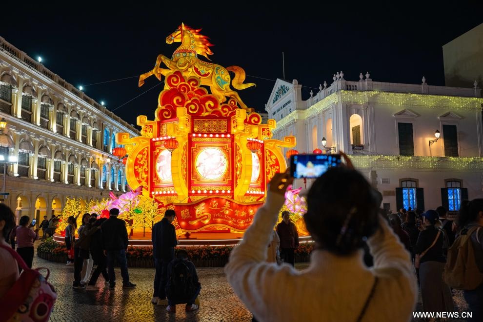 ماكاو 8 فبراير 2026 (شينخوا) في الصورة الملتقطة يوم 7 فبراير 2026، زينات احتفالية في ساحة سينادو في منطقة ماكاو الإدارية الخاصة في جنوبي الصين. وتم وضع هذه الزينات استعدادا للاحتفال بالسنة الصينية التقليدية الجديدة.