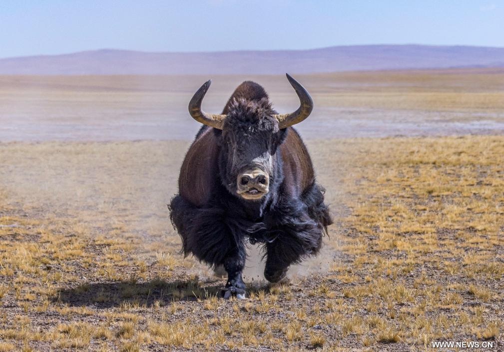 لاسا 22 مارس 2026 (شينخوا) في الصورة الملتقطة يوم 12 مارس 2026، ياك بري بالقرب من نهر زانغسير كانغري الجليدي في محمية تشانغتانغ الطبيعية الوطنية بمنطقة شيتسانغ ذاتية الحكم في جنوب غربي الصين.