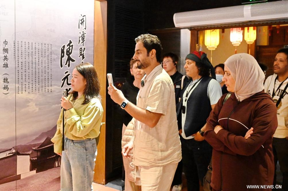 تشانغتشو 18 أبريل 2026 (شينخوا) في الصورة الملتقطة يوم 16 أبريل 2026، فنانون عرب يزورون متحفا في بلدة تشانغتشو القديمة بمقاطعة فوجيان في جنوب شرقي الصين، حيث قام 9 فنانين عرب من الجزائر وسلطنة عمان ومصر وغيرها من الدول العربية بزيارة البلدة للتمتع بسحر الثقافة التقليدية المحلية.
