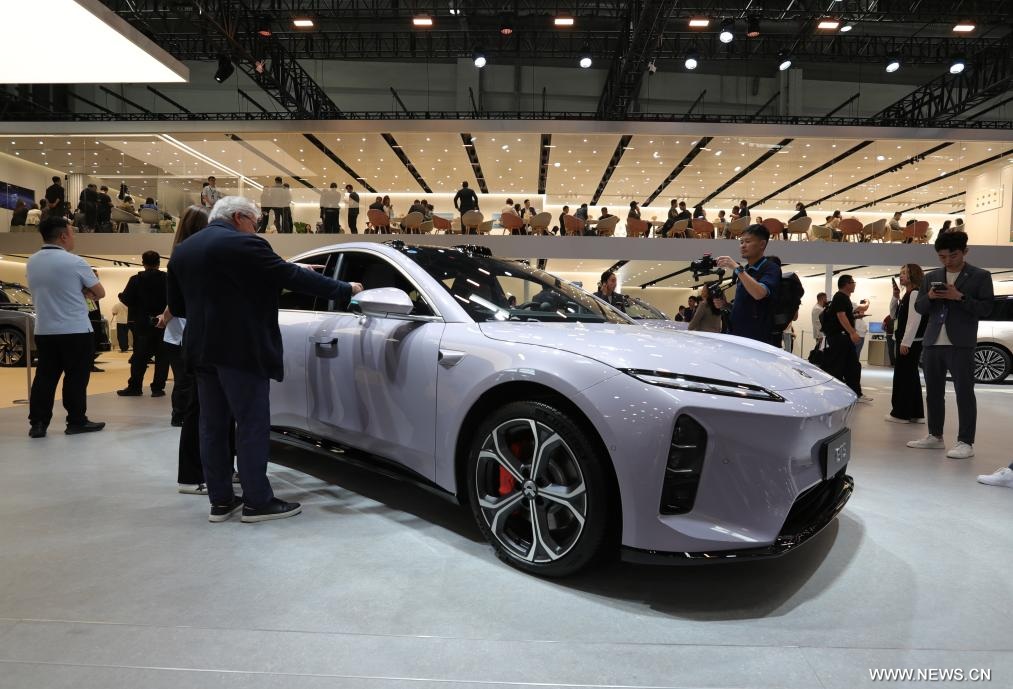| بكين 25 أبريل 2026 (شينخوا) في الصورة الملتقطة يوم 24 أبريل 2026، جناح شركة "نيو" خلال معرض بكين الدولي للسيارات 2026 في العاصمة الصينية بكين، الذي انطلقت أعماله يوم الجمعة الماضي ويستمر حتى 3 مايو المقبل. |